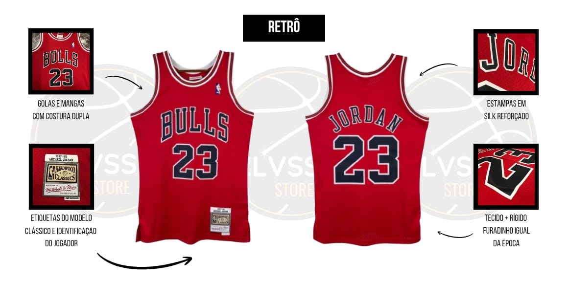 Quando o assunto é regata de basquete, encontraremos diversos produtos no mercado. Porém aqui na Clvssic Store, trabalhamos apenas com os modelos "swingman". Esse modelo foi projetado diretamente para os fãs, com costuras duráveis, estampas em silk reforçado e preço acessível. Diferente da versão "autêntica", que segue exatamente as usadas em quadra, com o acabamento da peça todo bordado e de valor elevado. No modelo swingman, existem dois segmentos: Temporada e Retrô.